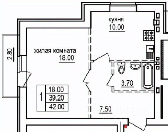 Общая площадь42 м2