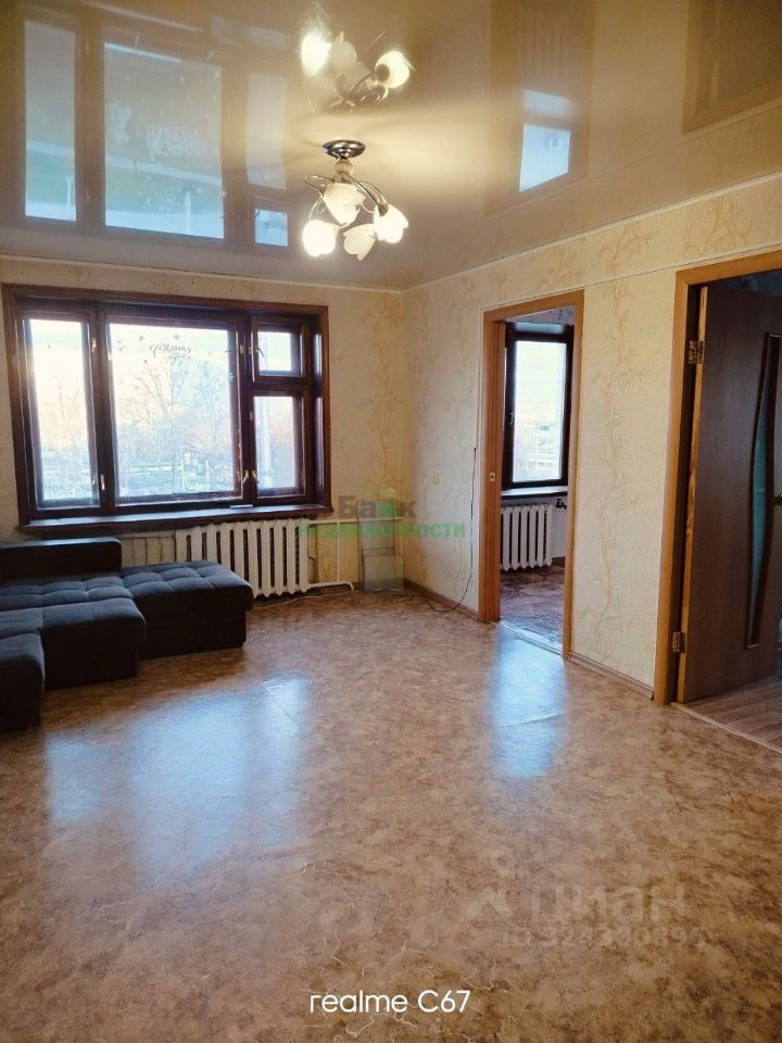 Продается просторная четырёхкомнатная квартира! Ищете идеальное место для комфортной жизни? Эта квартира на пятом этаже — отличный выбор для вашей семьи. Большая площадь, позволяющая создать уютное пространство для всей семьи. Для проведения семейных совместных вечеров.. В квартире общая площадь 63,1 м². Удобная планировка: вместо тесной кухни — полноценная кухнягостиная, благодаря чему остаются три большие изолированные комнаты под спальни/детские/кабинет. Просторная прихожая позволяет разместить системы хранения и не загромождать жилые помещения. В квартире остается качественный кухонный гарнитур из натурального дерева и вместительный шкаф — можно заезжать без дополнительных вложений в мебель. Окна современные деревянные, пол — линолеум, выполнен косметический ремонт, все аккуратно и чисто, при желании легко обновить под свой вкус. Электропроводка частично заменена. Крыша дома отремонтирована в 2023 году — в квартире тепло и сухо в любое время года. Очень светло, из окон открывается приятный вид, ориентация на улицу (не во двор) дает больше приватности и инсоляции, на высоте пятого этажа меньше пыли. Инфраструктура на расстоянии короткой прогулки: продуктовые и хозяйственные магазины, остановки общественного транспорта, рядом медицинский центр — удобно для семей с детьми, пожилых родственников и тех, кто ценит доступность сервисов. На кухне предусмотрена удобная ниша для холодильника, а в одной из комнат спокойно помещается большой обеденный или рабочий стол — места хватит всем. Санузлы в ухоженном состоянии: туалет отделан пластиковыми панелями, ванная частично в кафеле. Адекватные собственники, быстрый выход на сделку, показы по договоренности. Отличный вариант для тех, кто ищет светлую и теплую квартиру с функциональной планировкой и понятными перспективами обновления под себя. Звоните — договоримся о просмотре в удобное для вас время. Не упустите свой шанс! Позвоните нам прямо сейчас, чтобы записаться на просмотр и стать владельцем этой замечательной квартиры Рассматривается форма оплаты: только наличные. В нашем офисе расположены представительства федеральных банков. У нас Вы можете подать заявку без очереди и получить специальную скидку для наших клиентов, даже с плохой кредитной историей, без подтвержденного дохода и первоначального взноса, по самым низким ставкам. Полное юридическое сопровождение сделки. Цена на объект указана без скрытых комиссий.