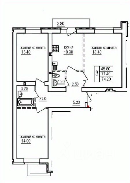 Общая площадь74,2 м2