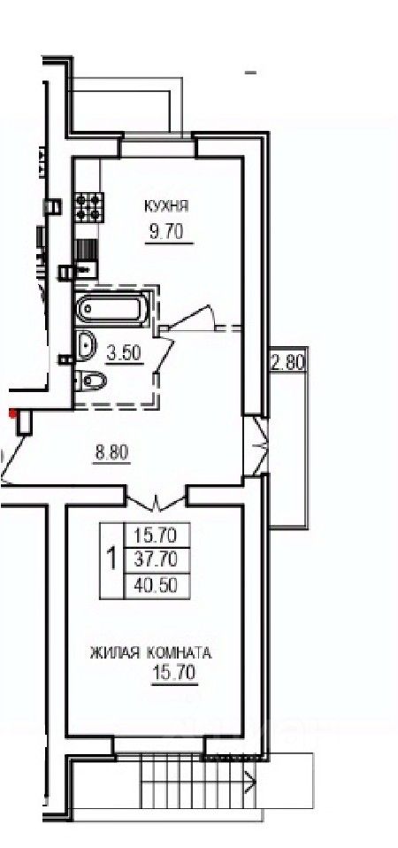 Общая площадь40,5 м2