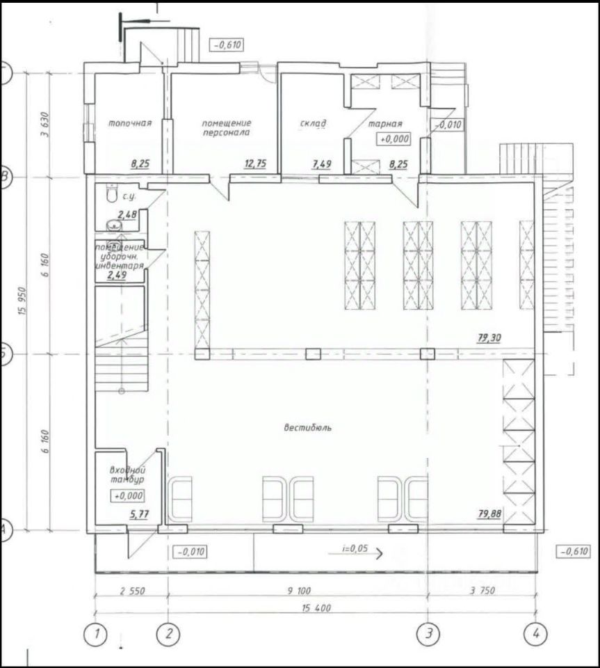 КОММУНИКАЦИИ: Отопление автономное электрическое от 2ух контурного котла с дистанционным управлением. Вода холодная центральная Канализация переливной септик Электричество 45кВт Звукоизоляция высокая за счет толщины стен. Здание имеет 4 выхода, один может использоваться как погрузочно- разгрузочный и на 2ом с выходом на террассу и на лестницу.