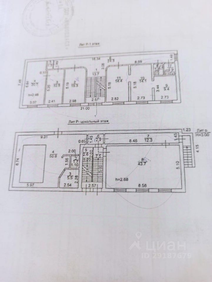 Расположено на 1-м - 14,4 м2 и цокольном- 43,7 м2 этажах здания,