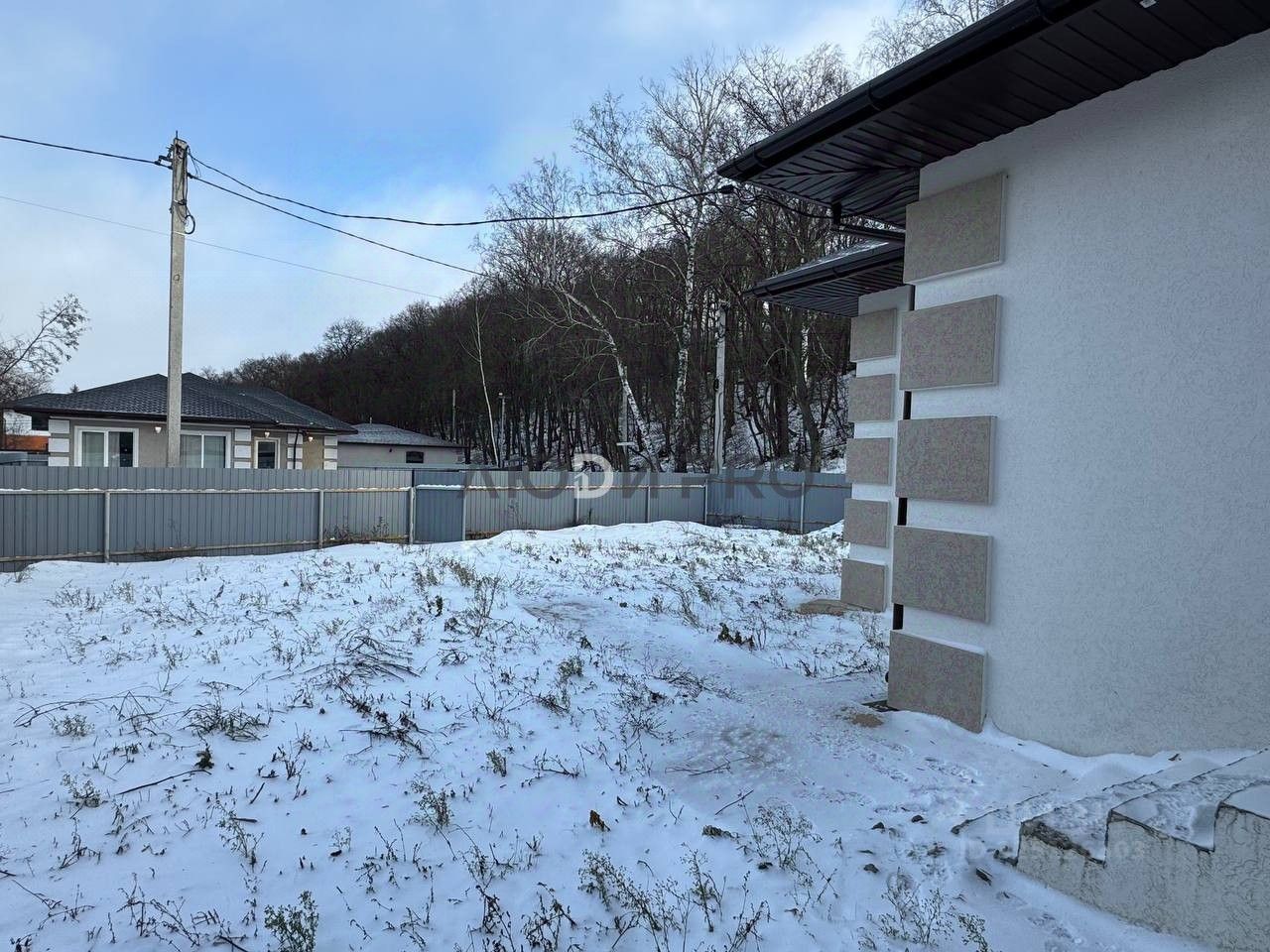 Во дворе: залита бетонная дорожка к дому и по периметру, участок огорожен забором.