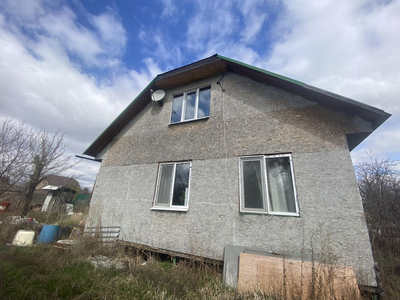Материал стен сип-панели, фундамент свайный, крыша профлист, утепленная.