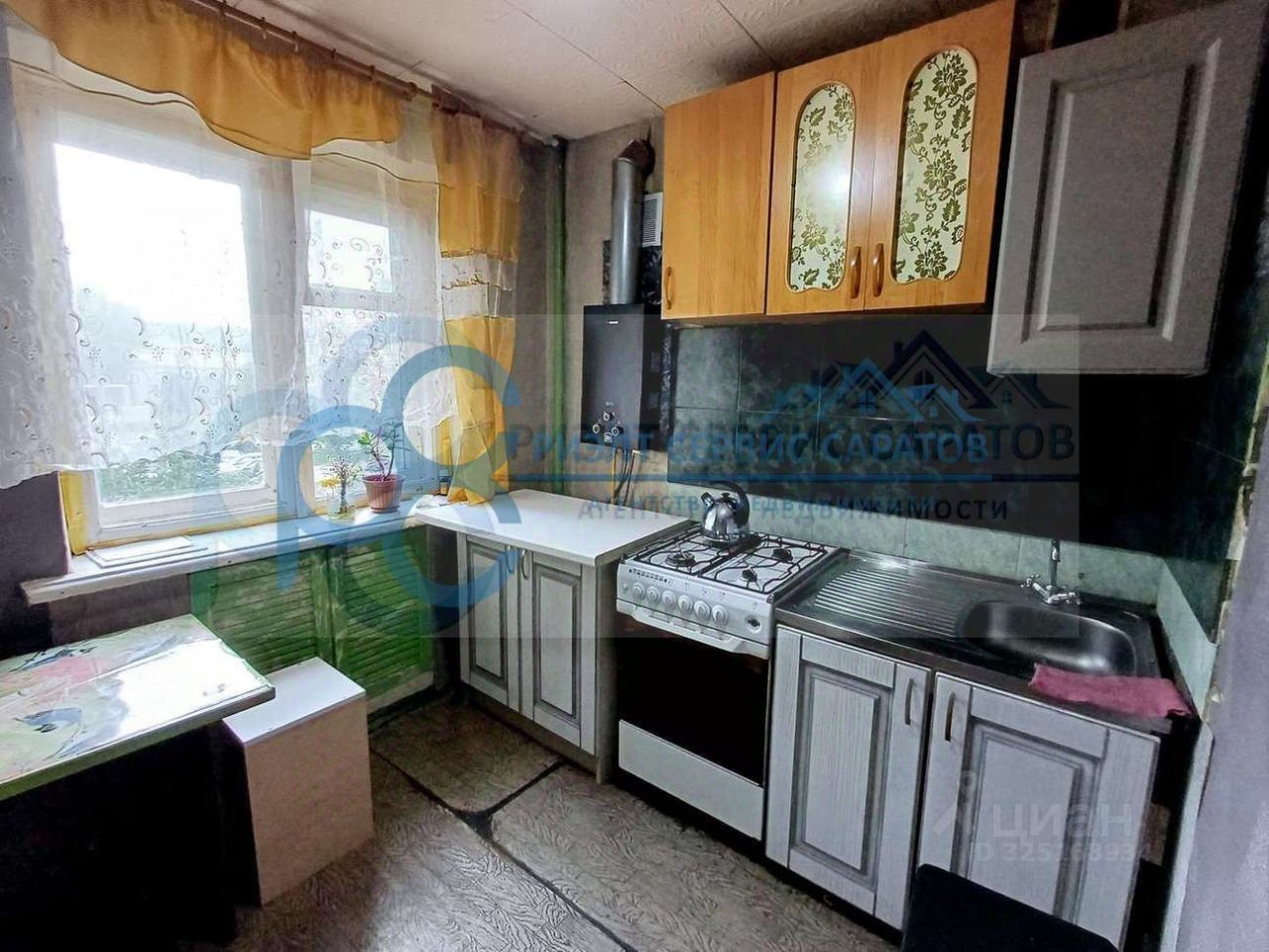 --КУХНЯ: кухонная мебель,обеденный стол с табуретками.