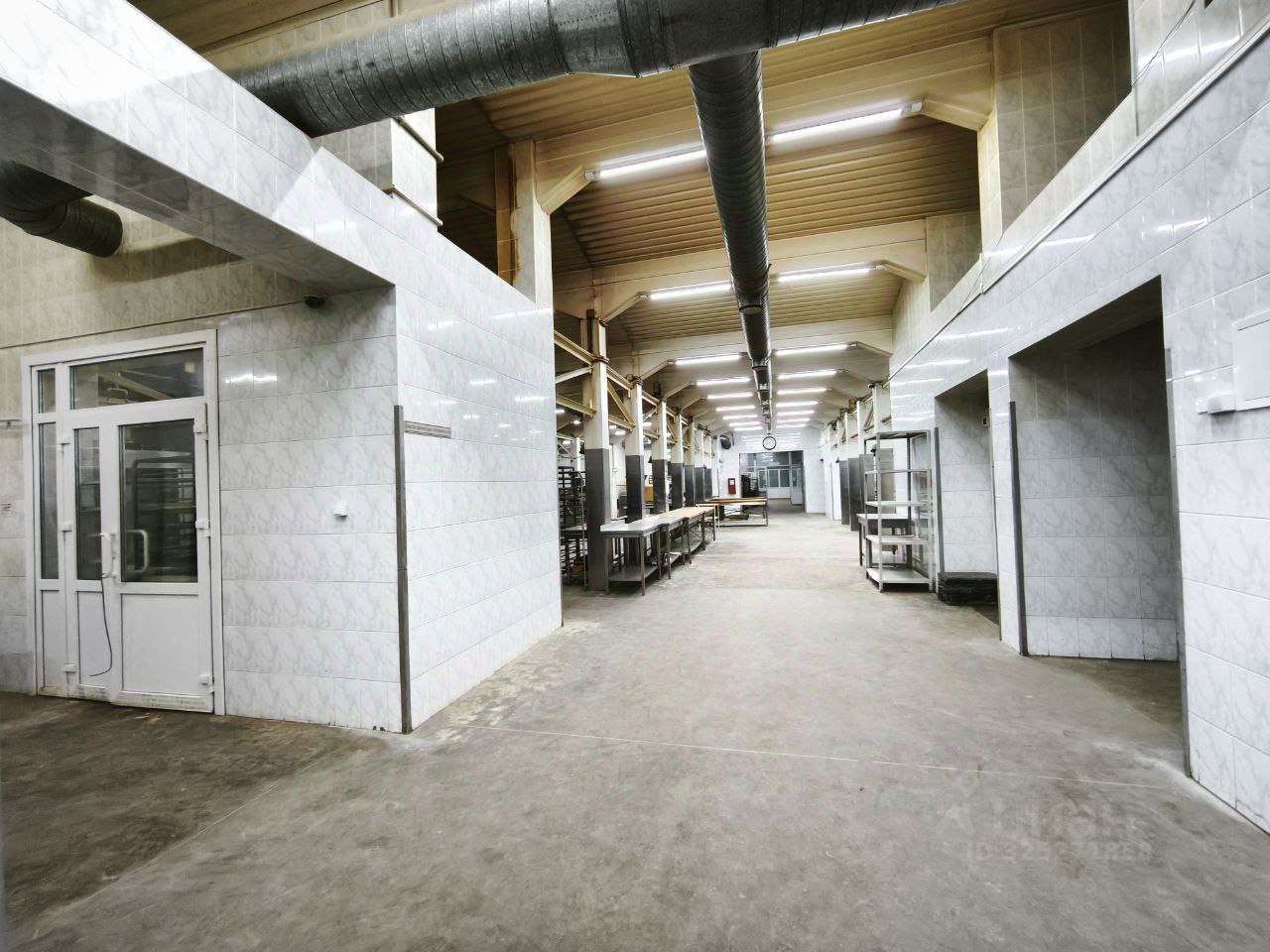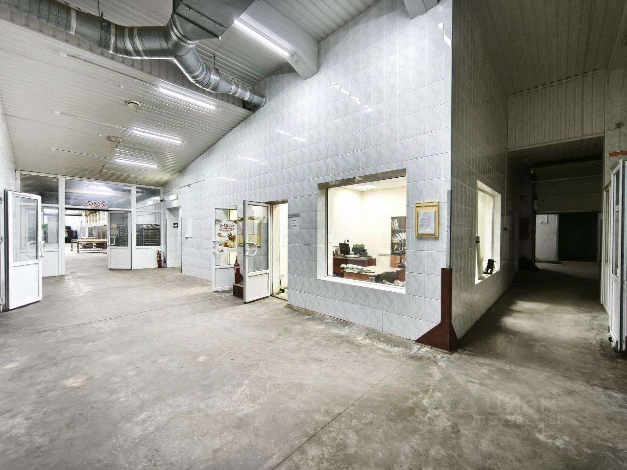 Полы одноуровневые антипыль (топпинг). Высота потолков в помещении достигает 6.5 метров.