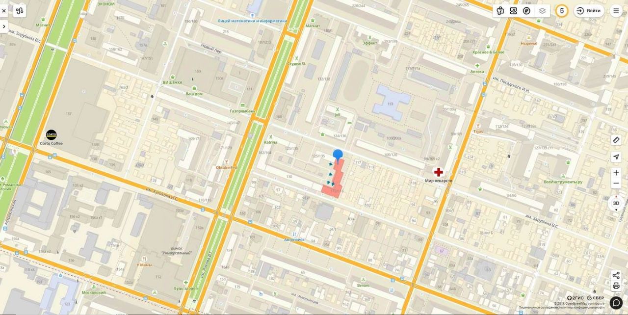 Универсальное торговое помещение в жилом здании. Помещение находится на 1-м этаже. Высота потолков 2,7 метра, центральное отопление, ГВС, ХВС, санузел. Выделенная электрическая мощность 15 кВт. Отдельный вход в помещение с первой линии и дополнительный для разгрузки, так же с первой линии.