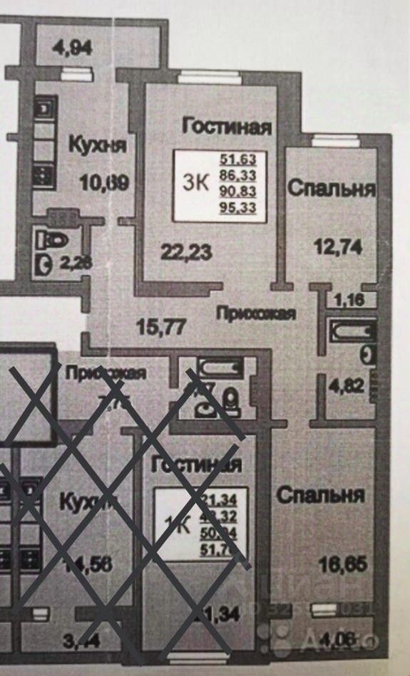 Площадь по документам 86.3 кв.м. + две лоджии. Просторная кухня - гостиная 11 + 22 кв.м., комнаты 13 и 17 кв.м.