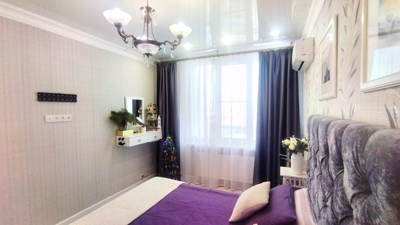 Качественный ремонт в приятных тонах. Две лоджии, два совмещённых санузла (в одном ванна, в другом - душевая кабина).