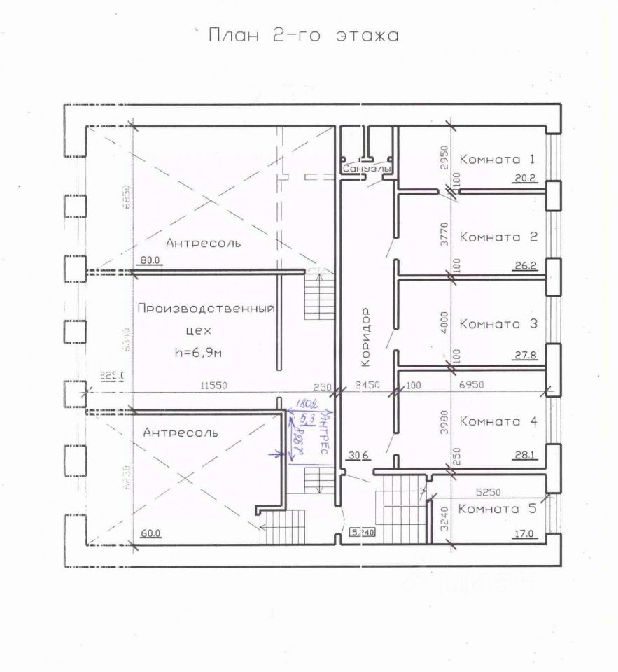 • Общая площадь 700 (549,8+ антресоль) м²,