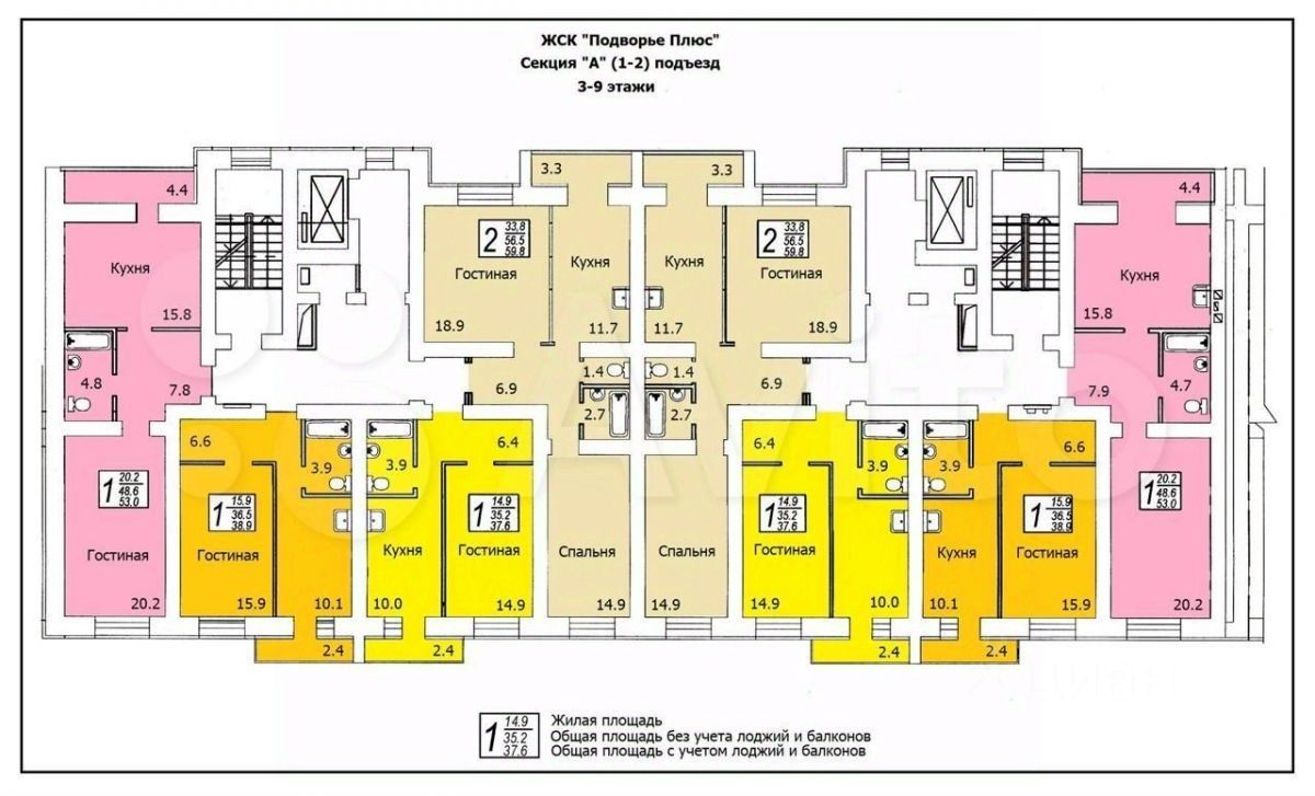 Общая площадь54,5 м2