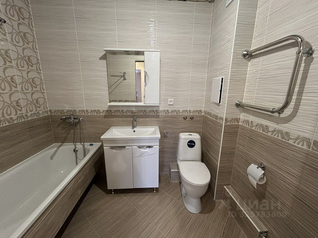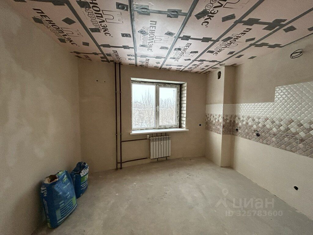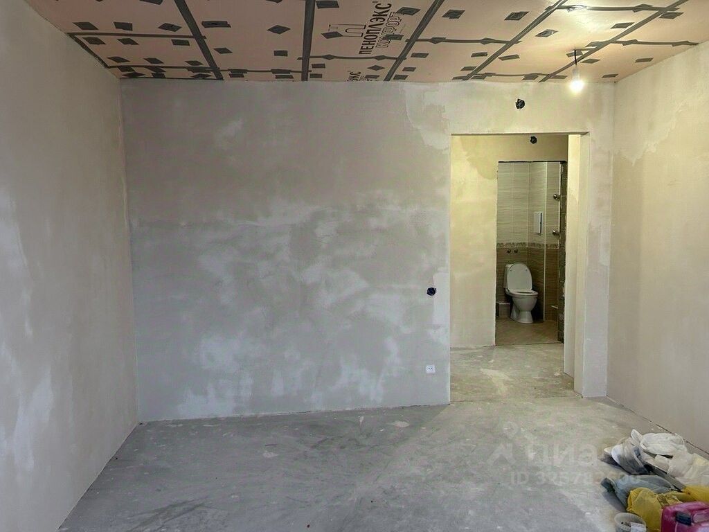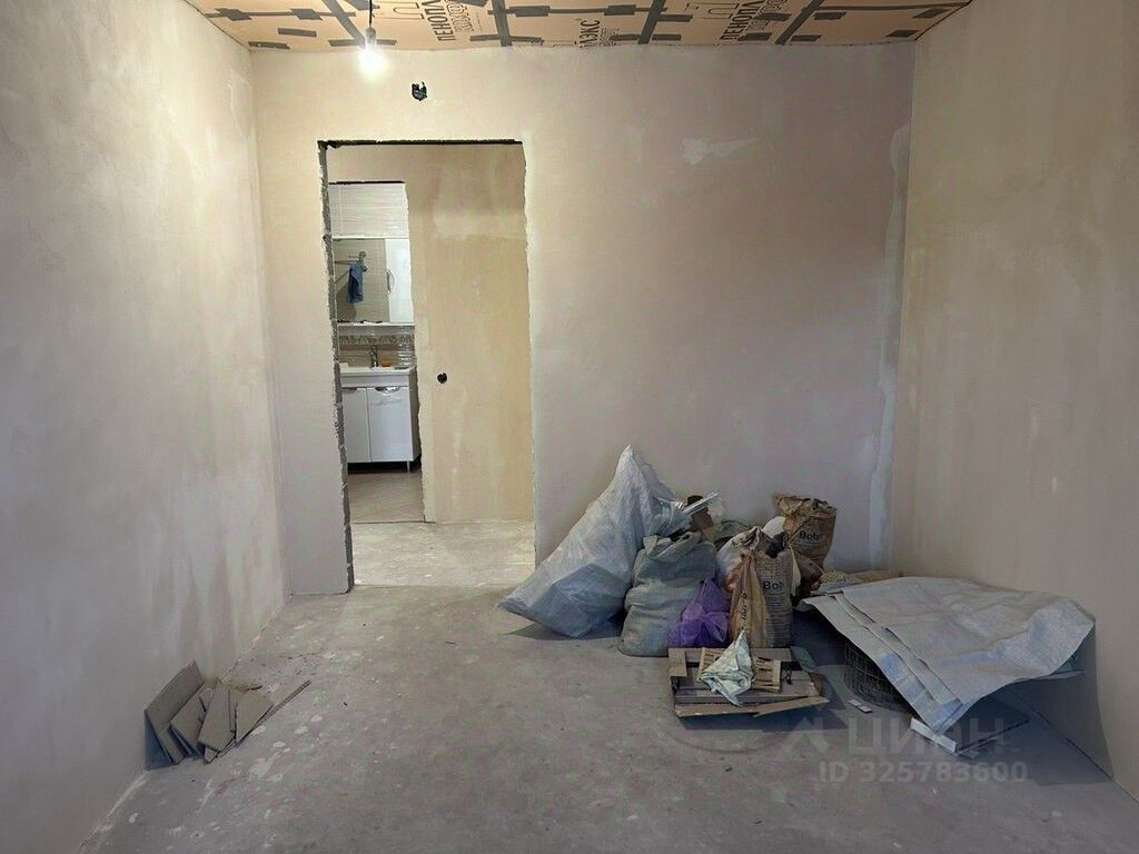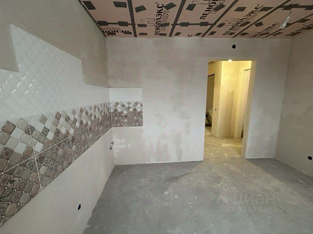 В квартире сделан частичный ремонт: возведены стены, выполнена стяжка пола, проведена электрика, стены выровнены под маяки, установлена входная дверь, балкон остеклен, полностью сделана ванная комната, на кухне выложен фартук.