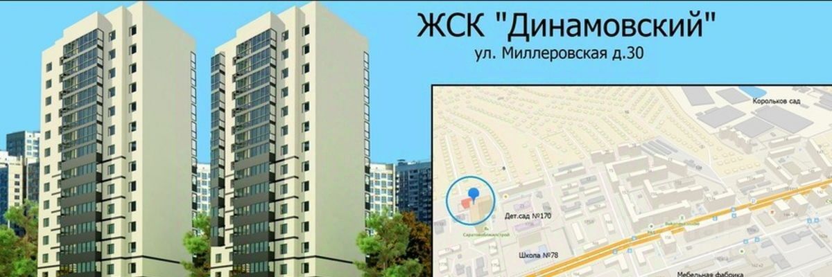 Новый жилой комплекс ''Динамовский'' расположен по ул.Миллеровская д.30, в Заводском районе Саратова.