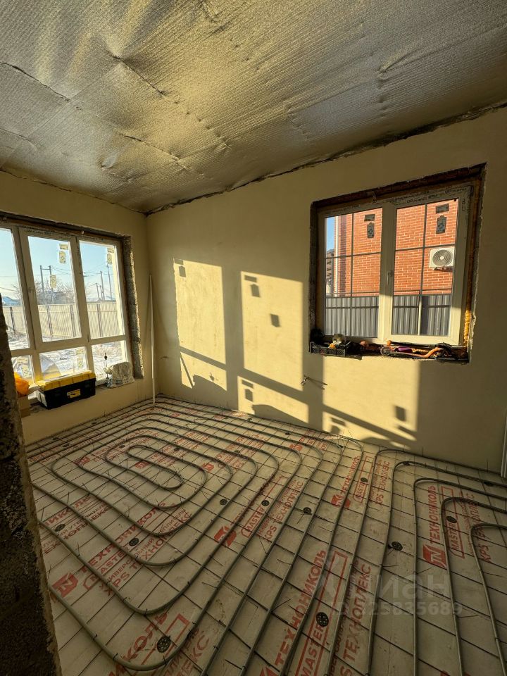 Выполнены работы по черновой отделке - механизированная штукатурка стен, разводка теплого пола по всей площади дома, установка инженерных коммуникаций.