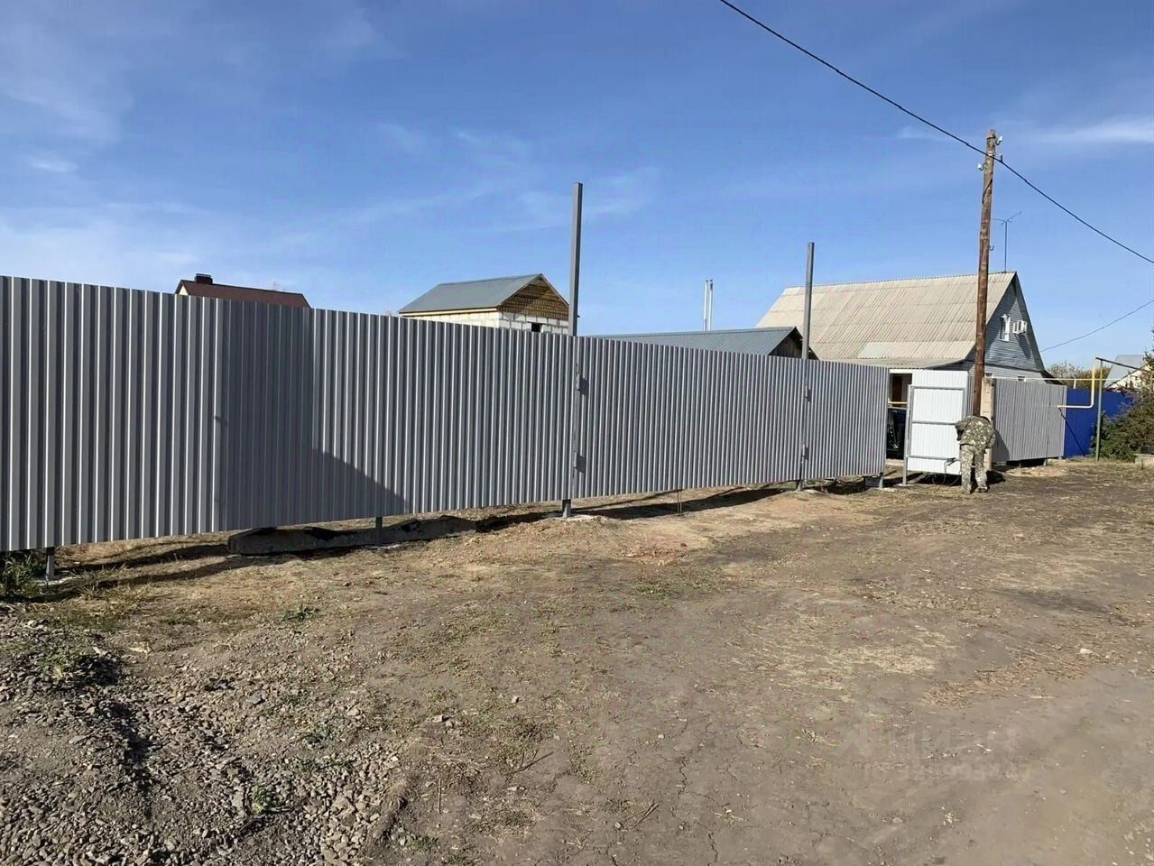 Продается ровный участок, огороженный забором. На участке расположены новые постройки: домик только коробка без отделки и гараж с ямой. К участку подведены все необходимые коммуникации: вода, газ и электричество (15 квт). Все постройки новые, но еще не зарегистрированы.