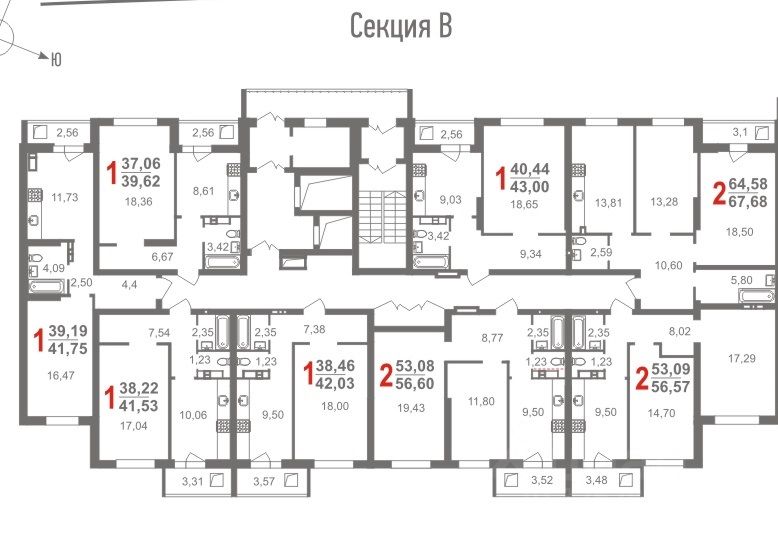 Общая площадь56,57 м2