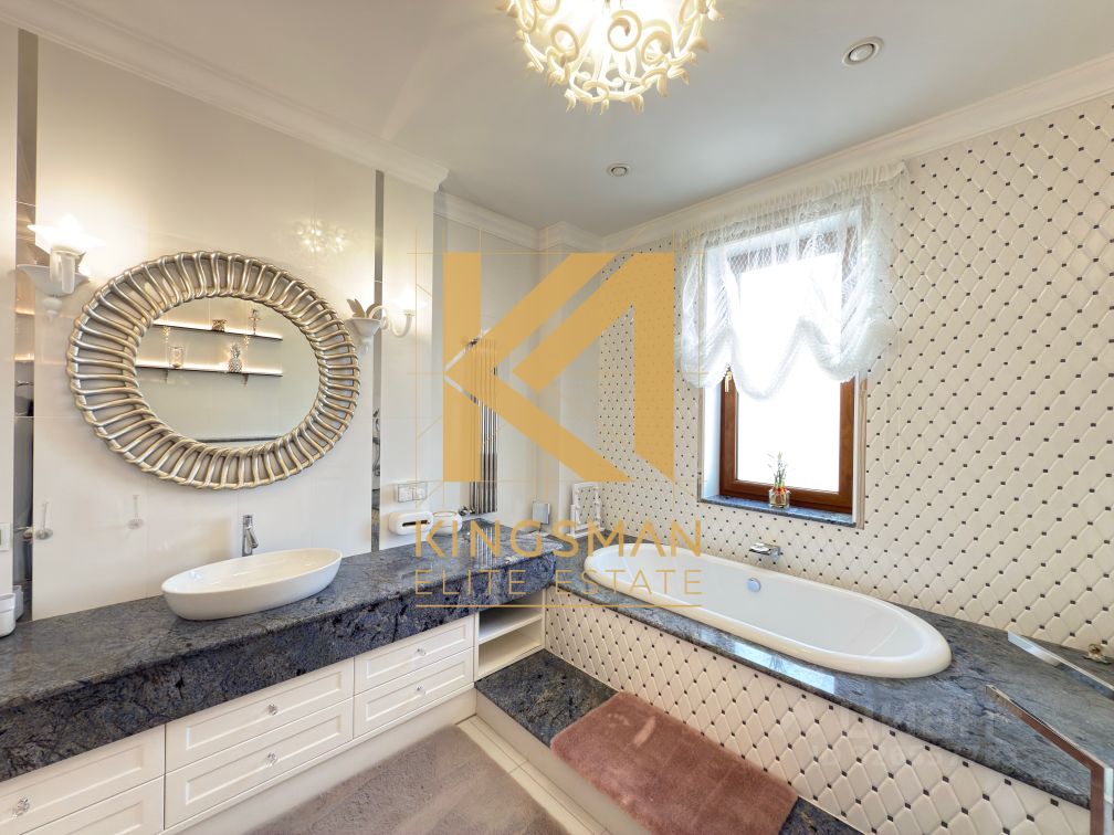 На втором этаже расположились: три спальни, одна спальня со своим санузлом и просторной гардеробной комнатой, отдельная ванная комната. На участке дополнительно имеется не входящий в общую площадь дома отдельностоящая беседка с мануальной зоной, своей кухней и дровяным каминой зоной В отделке использовались исключительно эксклюзивные, импортные и качественные материалы. Мебель и бытовая техника премиум класса производства Италия, Франции, Германии. Стоимость аренды: 300 000 рублей.