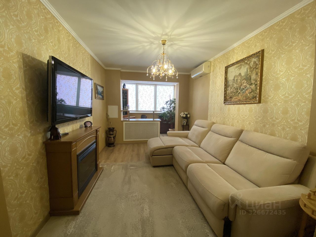 Общая площадь — 84,5 кв. м, не считая двух лоджий. Выполнен современный ремонт из качественных материалов. В квартире есть просторная кухня (9 кв. м), изолированные комнаты, гардеробная. На полу — ламинат и керамогранит. В кухне и на лоджиях — теплый пол, натяжные потолки, пластиковые окна, водонагреватель и сплит-системы. Квартира выходит на две стороны.