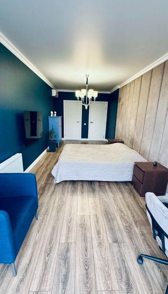 Отделка. В квартире выполнен дорогой дизайнерский ремонт с использованием экологичных материалов. На полу единым контуром ламинат, устойчивый к влаге и внешнему воздействию, натяжные потолки, панорамное остекление с видом на парк ''Изумрудный''. Ванная комната и санузел отделаны качественной плиткой, установлена сантехника. Вопрос с мебелью и техникой обговаривается индивидуально с покупателем по итогу просмотра.