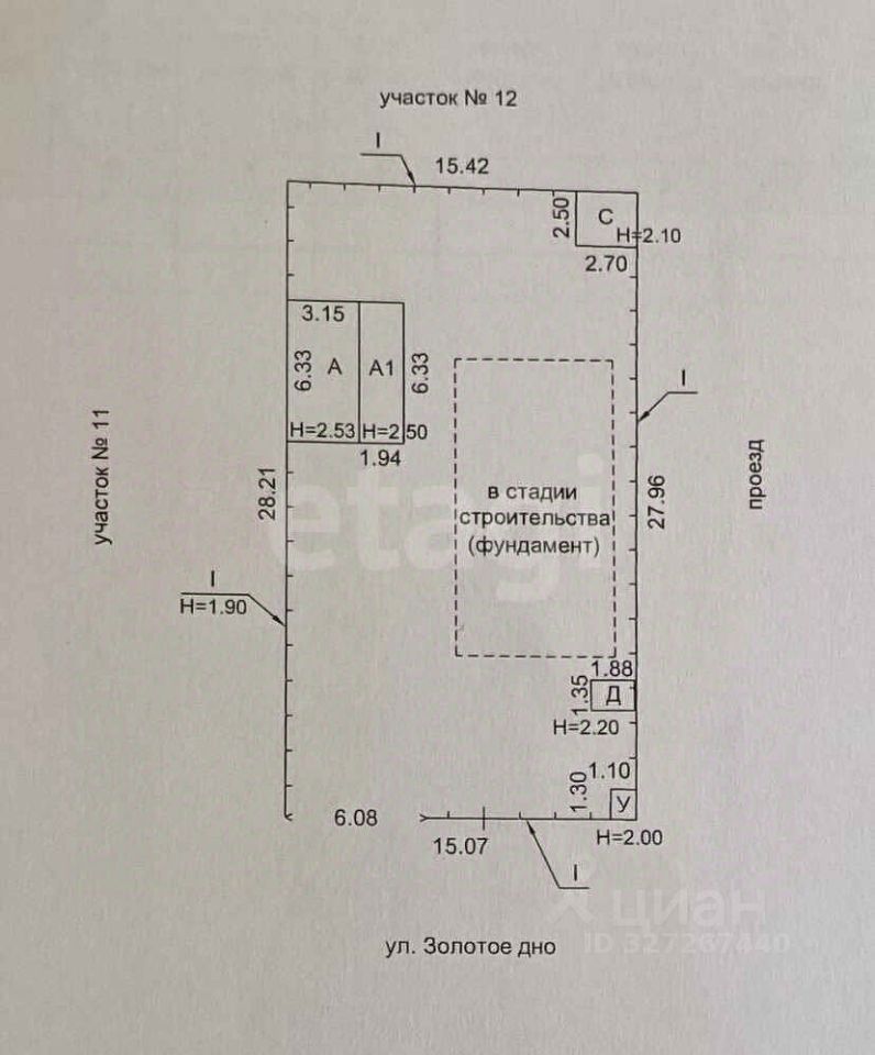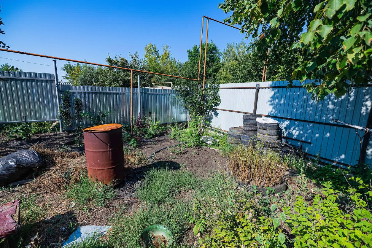 Участок: Участок прямоугольной формы под небольшим наклоном, огорожен забором из профнастила. Имеются 2 входа на противоположных концах участка. На территории (помимо дома и дачи) имеется сарай, а также заложен фундамент под строительство дома. Земля, где дача, разработана под огород. На участке произрастают яблоня, абрикос, вишня, слива, грецкий орех, малина, смородина, крыжовник, хвоя.