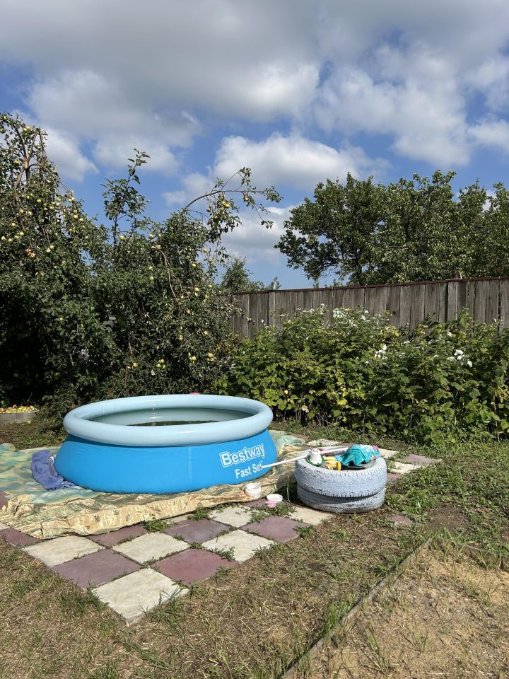Баня на дровах (5-6 человек) Новый туалет (глубина 2,2 м) + хозблок Плитка под каркасный бассейн можно сразу ставить!