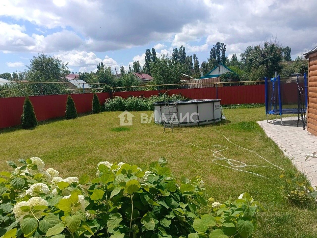 Ухоженный участок с плодовыми и хвойными деревьями, обнесён забором из металлопрофиля, фасадная часть выстроена из кирпича. Участок высажен новым рулонным газоном (не представлено на фото).